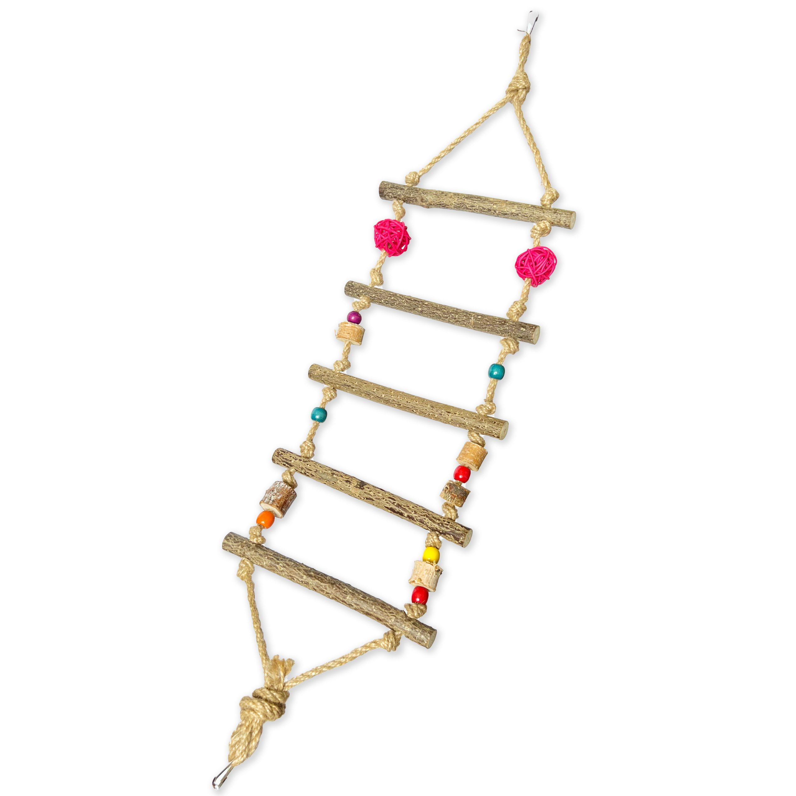 - Кольорові намистини: Різнобарвні намистини, розташовані по всій довжині драбинки, не тільки приваблюють увагу папуги, але і сприяють ментальній стимуляції, дозволяючи птаху досліджувати та грати з ними.
