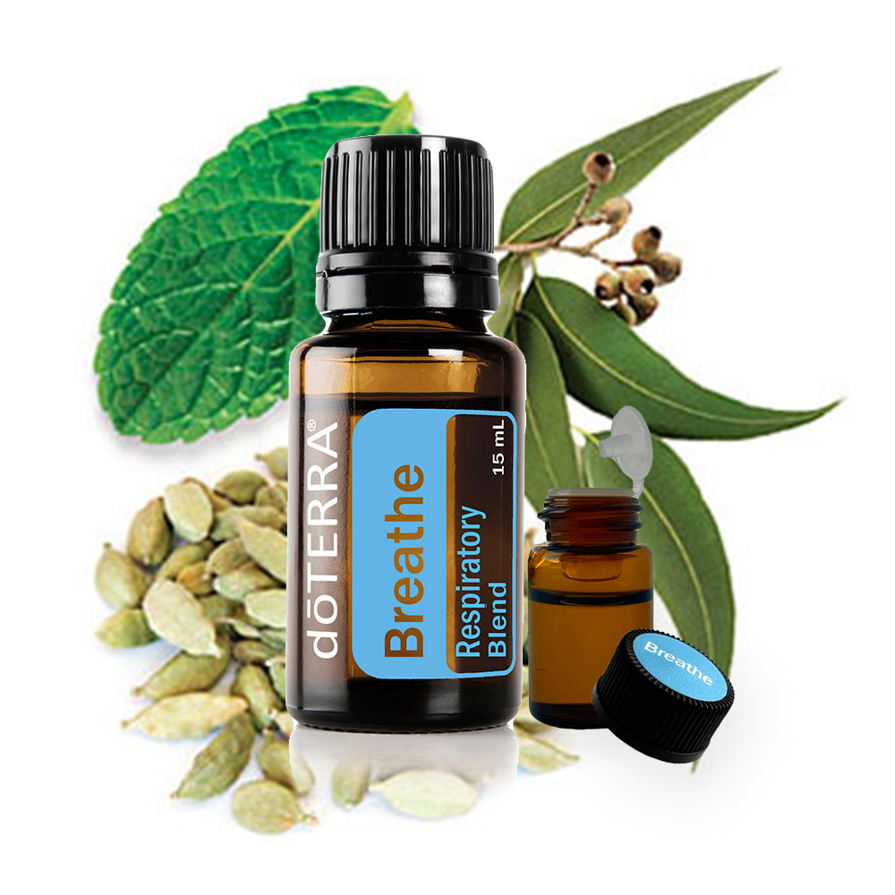 Ефірна олія Дихання Breathe doTERRA – це унікальна комбінація ефірних олій лавра, перцевої м’яти, евкаліпта, чайного дерева, лимона, кардамону, коров’яку та равенсари. Ця потужна формула створена для того, щоб підтримувати відчуття чистих дихальних шляхів та полегшувати дихання вдень і вночі.