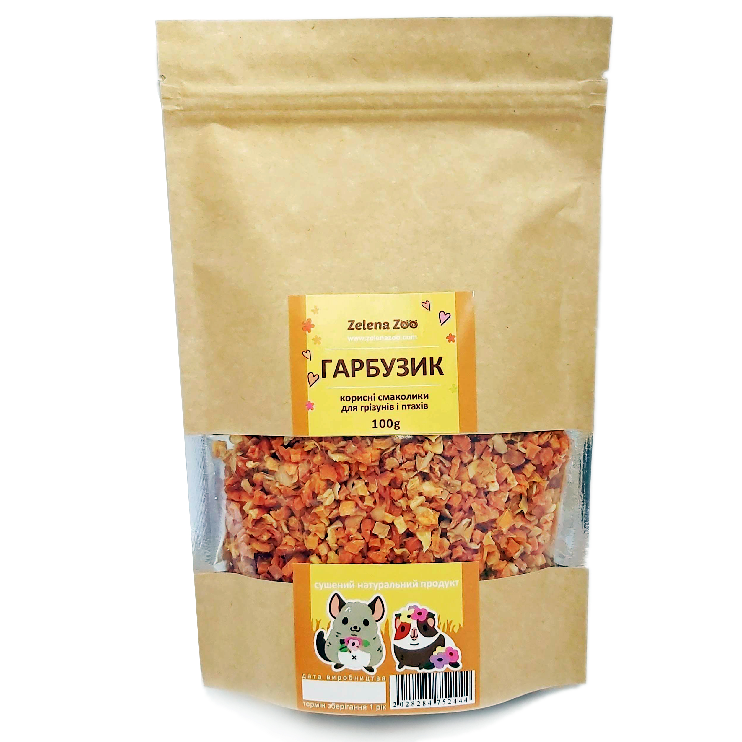 Гарбузик сушений для гризунів та папуг 80 г Zelena Zoo – цей натуральний продукт стане чудовим доповненням до їхнього щоденного раціону, забезпечуючи здоров’я та енергію.