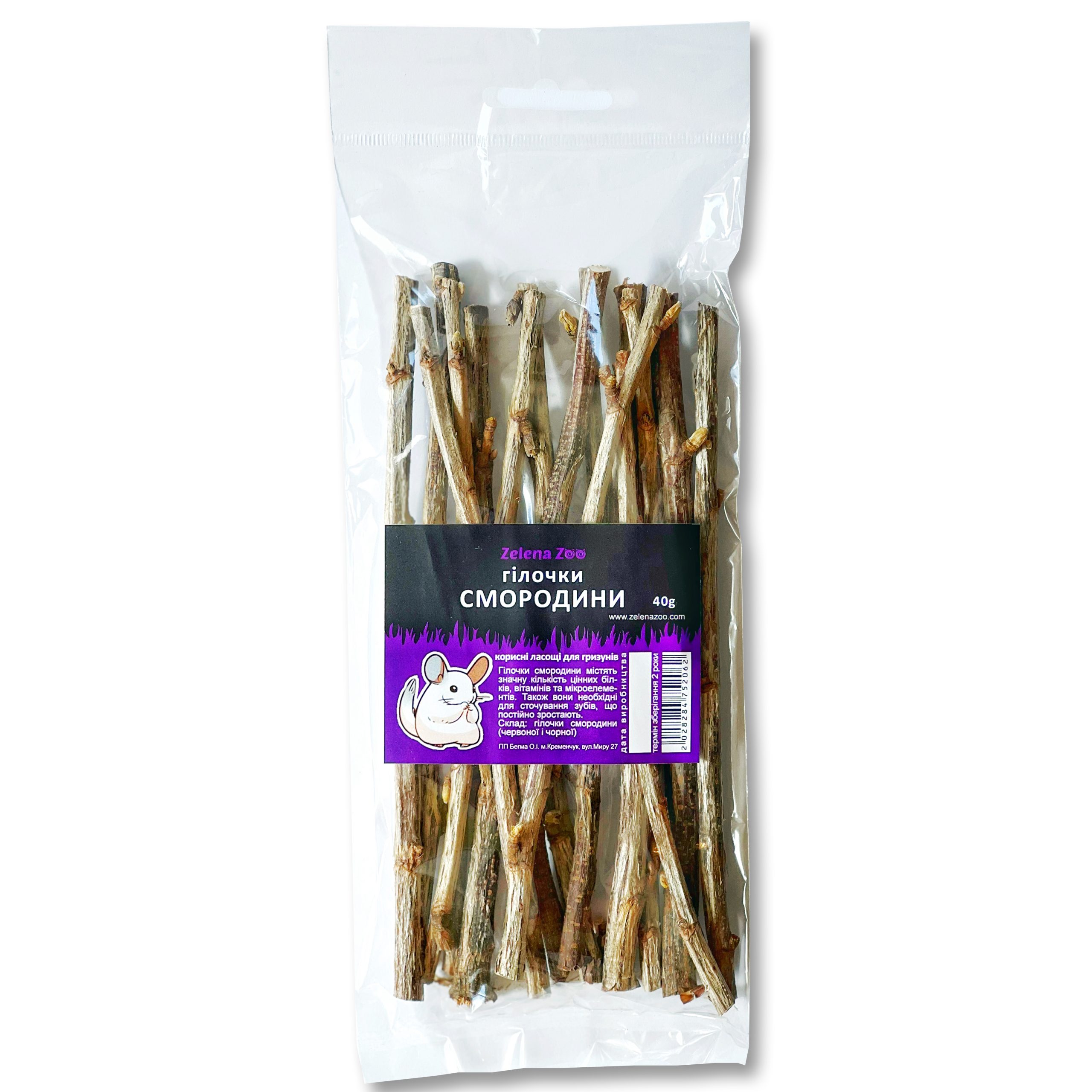 Рекомендації по годуванню: розмістіть кілька гілочок по всій клітці і регулярно замінюйте брудні гілочки свіжими. Дайте вашому улюбленцю гілочки смородини 40 г Zelena Zooі він буде задоволений.