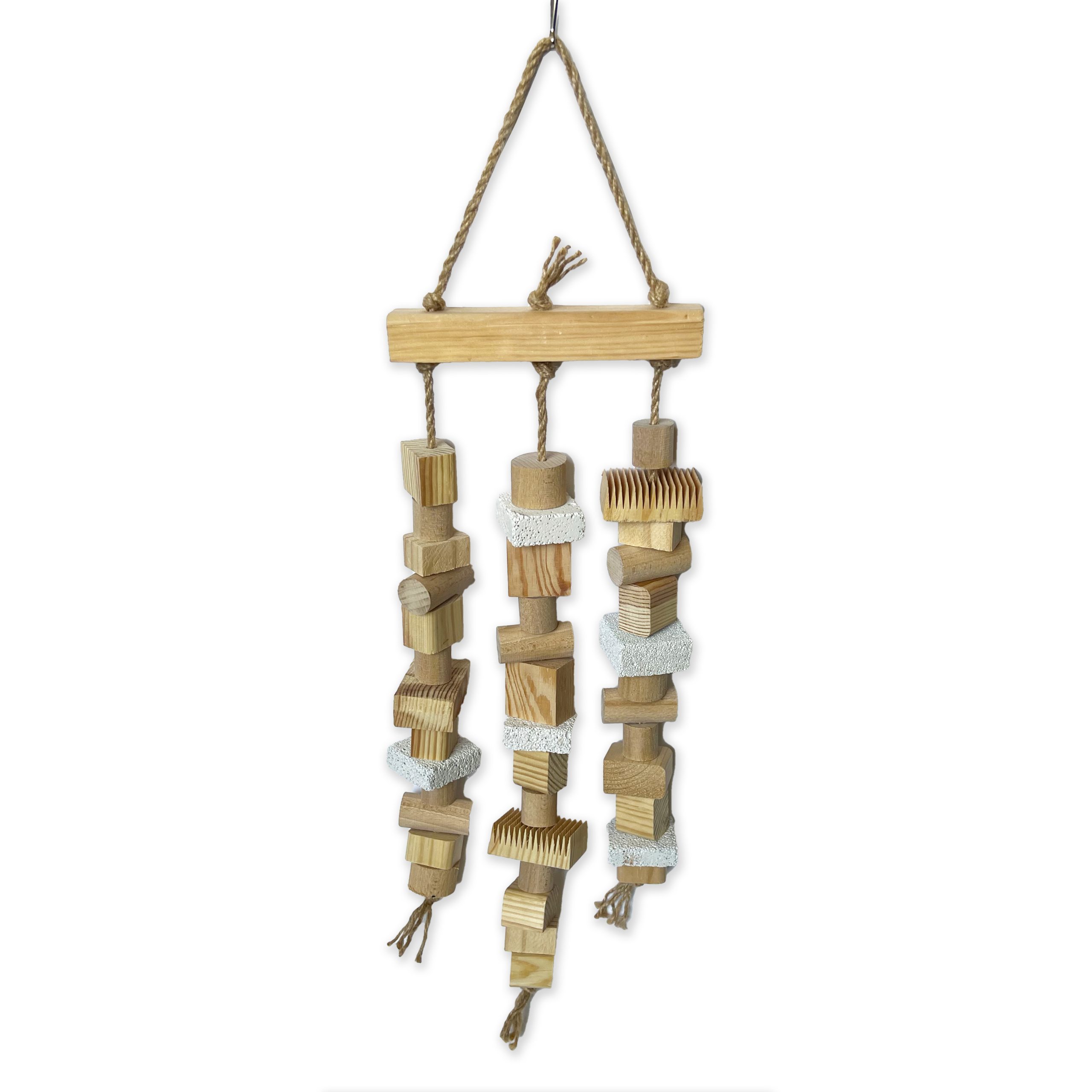 - Багатофункціональність: Окрім забезпечення веселощів та фізичних вправ, іграшка також сприяє зміцненню лапок та дзьоба, даруючи птахам відчуття природного середовища проживання.