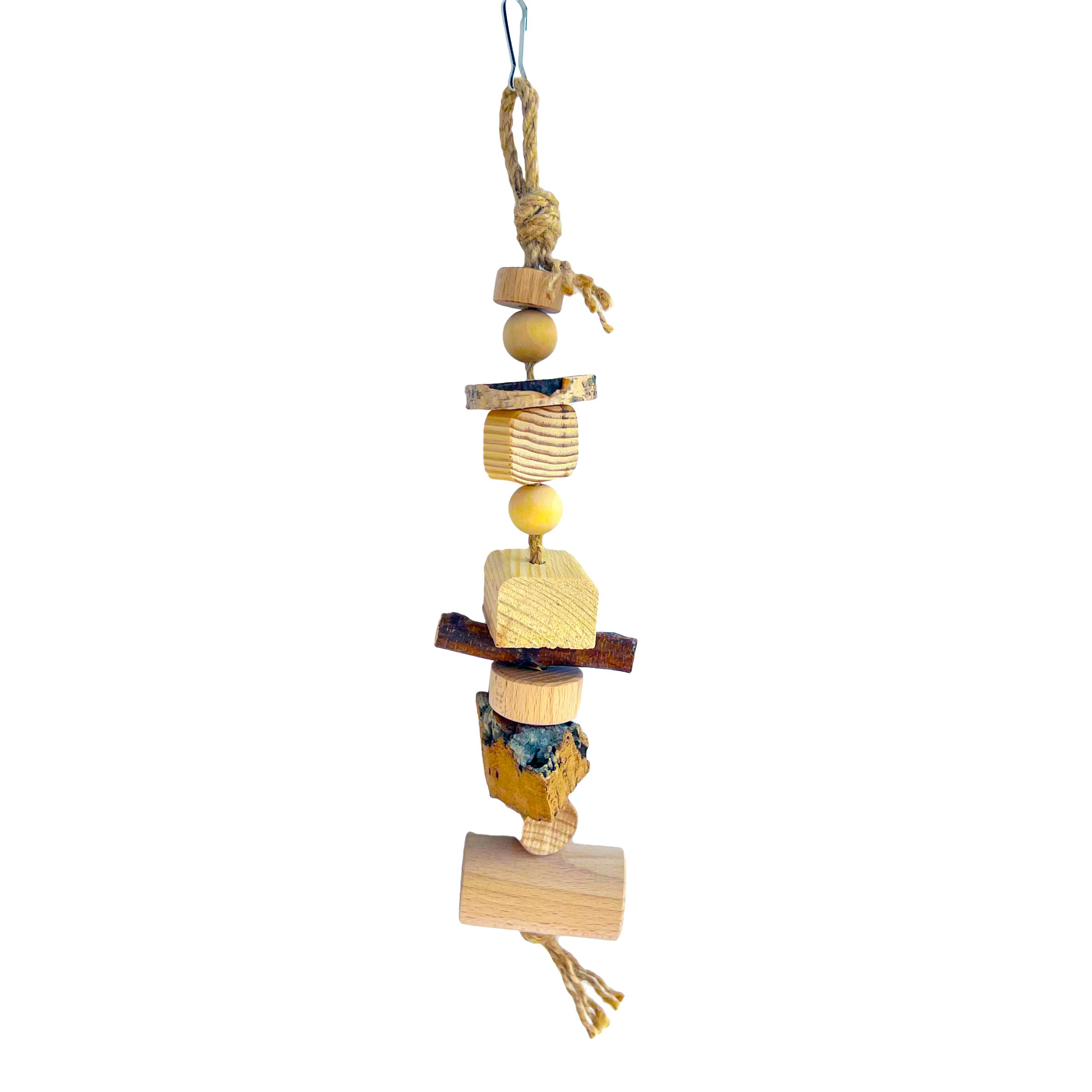 Іграшка з дерев’яними погризушками і корком для гризунів і папуг не тільки чудовий спосіб розважити пташку поки вас немає вдома, це важливий елемент фізичного та психологічного розвитку вашого улюбленця.