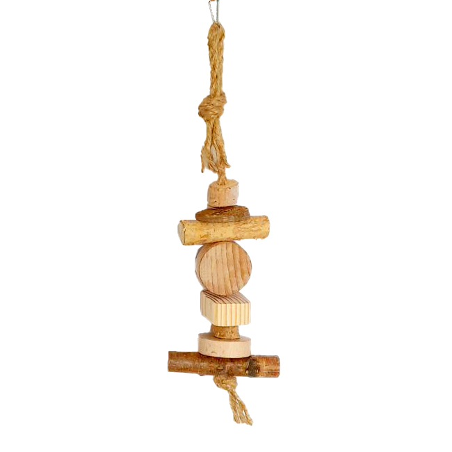 Іграшка з дерев’яними погризушками для гризунів і папуг не тільки чудовий спосіб розважити пташку поки вас немає вдома, це важливий елемент фізичного та психологічного розвитку вашого улюбленця.