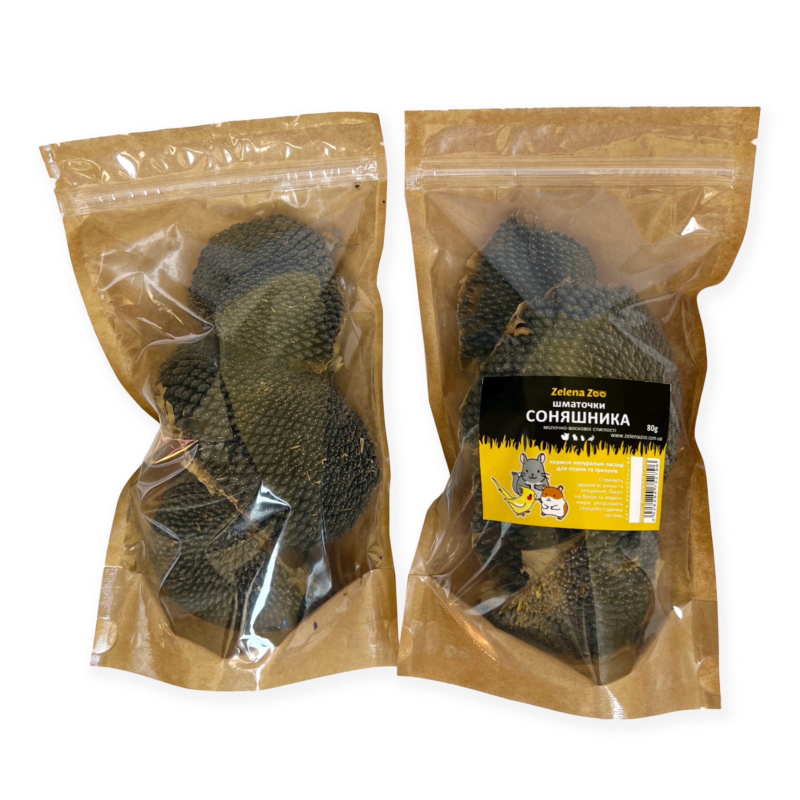 Соняшника шматочки для гризунів та птахів 80 г Zelena Zoo – це натуральний соняшник молочно-воскової стиглості, природний та смачний спосіб порадувати ваших маленьких улюбленців. Цей продукт зберіг всі корисні властивості. Соняшникові шматочки багаті на білок та корисні жири, що забезпечує додаткове джерело енергії для гризунів та птахів. Вони сприяють здоров’ю шкіри та оперення, підтримують нормальне функціонування серцево-судинної системи, а також покращують загальне самопочуття вашого улюбленця. Просто додайте ці шматочки до раціону вашого улюбленця, щоб зробити його харчування різноманітнішим і поживнішим.