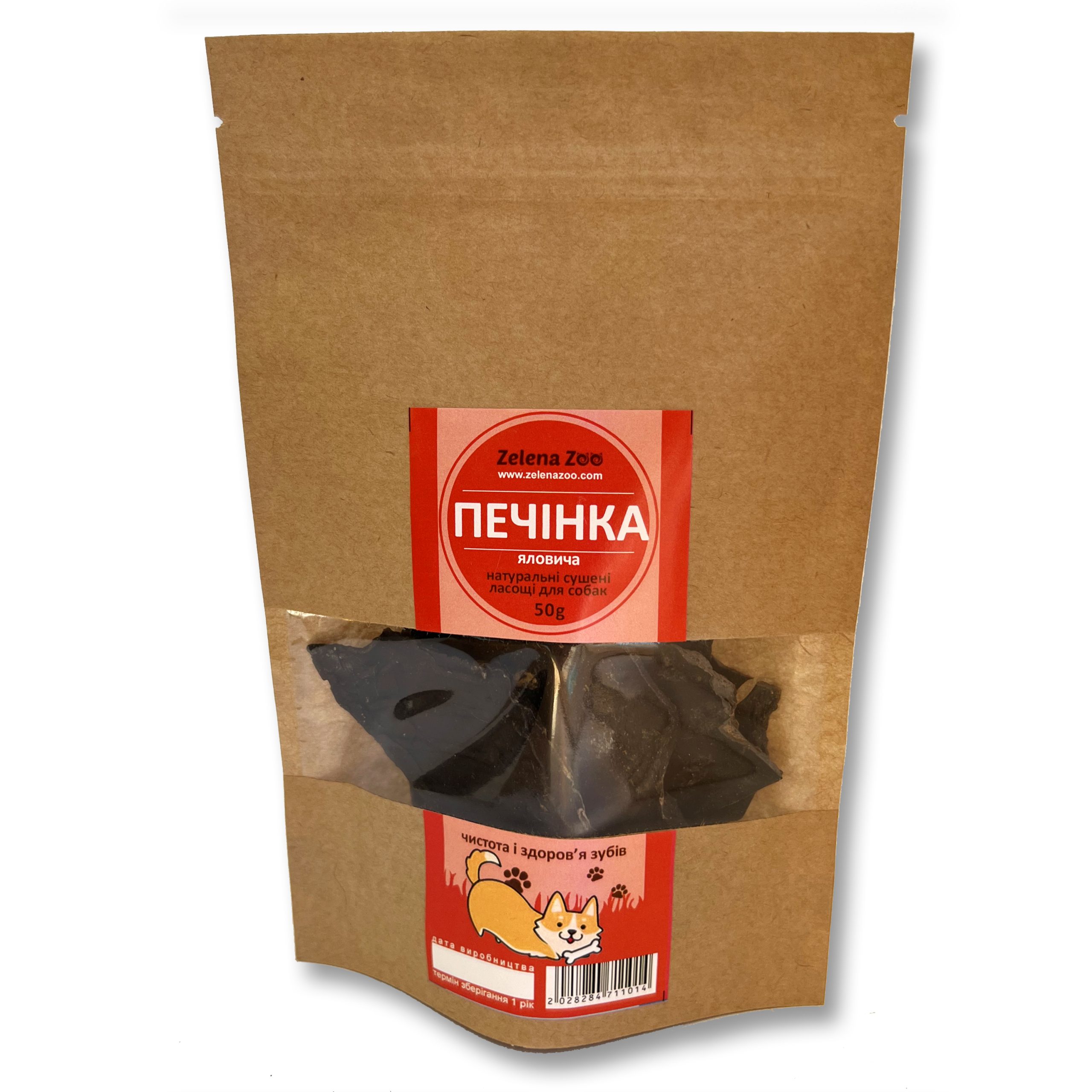 Сухняшки: Печінка яловича Крафт 50 г Zelena Zoo — не тільки смачні, але й корисні «довгограючі» ласощі для собак, багаті на вітаміни і мінерали. Підходить як для цуценят та молодих собак для нормального розвитку зубної системи, так і для відволікання та чищення зубів дорослого собаки.