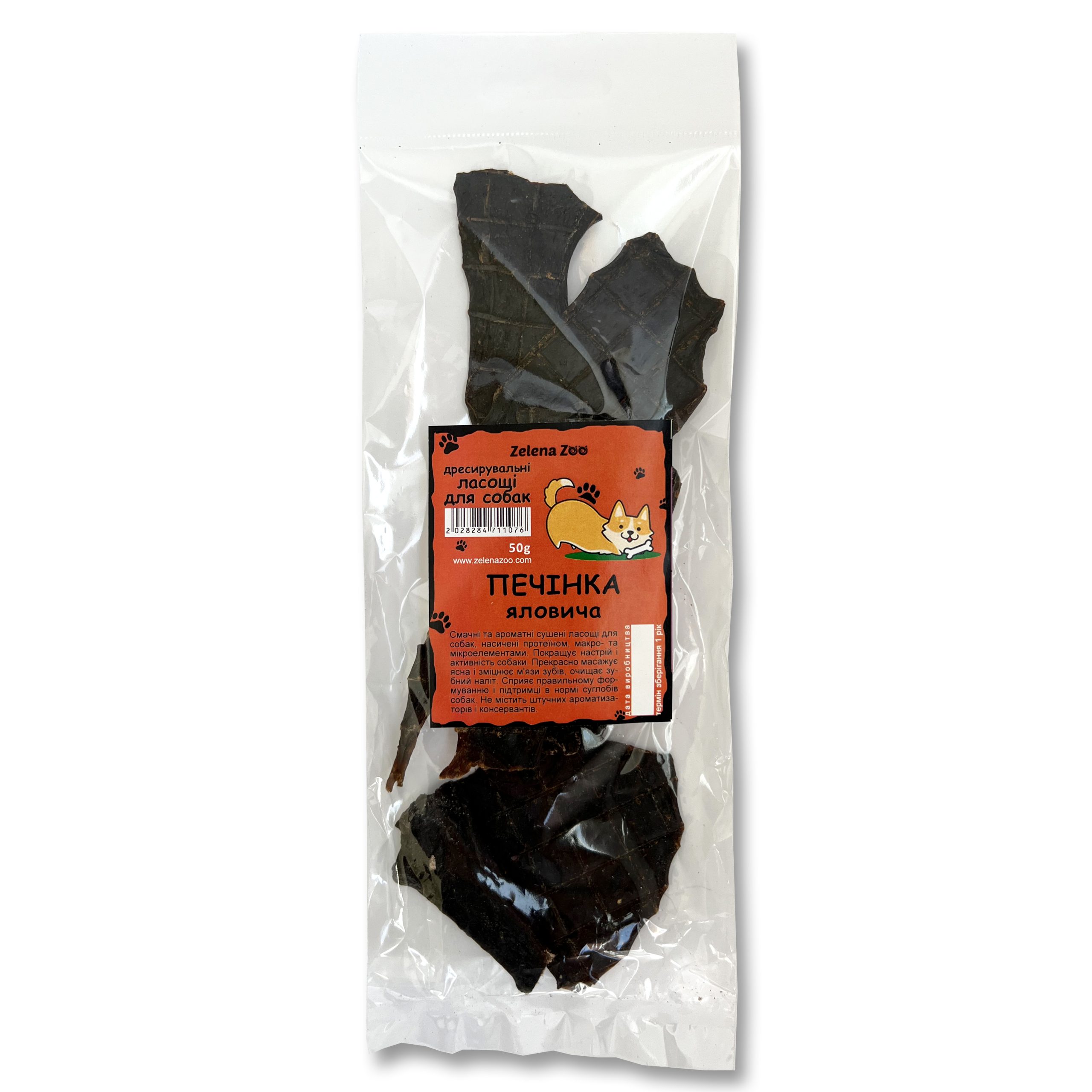 Сухняшки: Печінка яловича Пакет 50 г Zelena Zoo — не тільки смачні, але й корисні «довгограючі» ласощі для собак, багаті на вітаміни і мінерали. Підходить як для цуценят та молодих собак для нормального розвитку зубної системи, так і для відволікання та чищення зубів дорослого собаки.