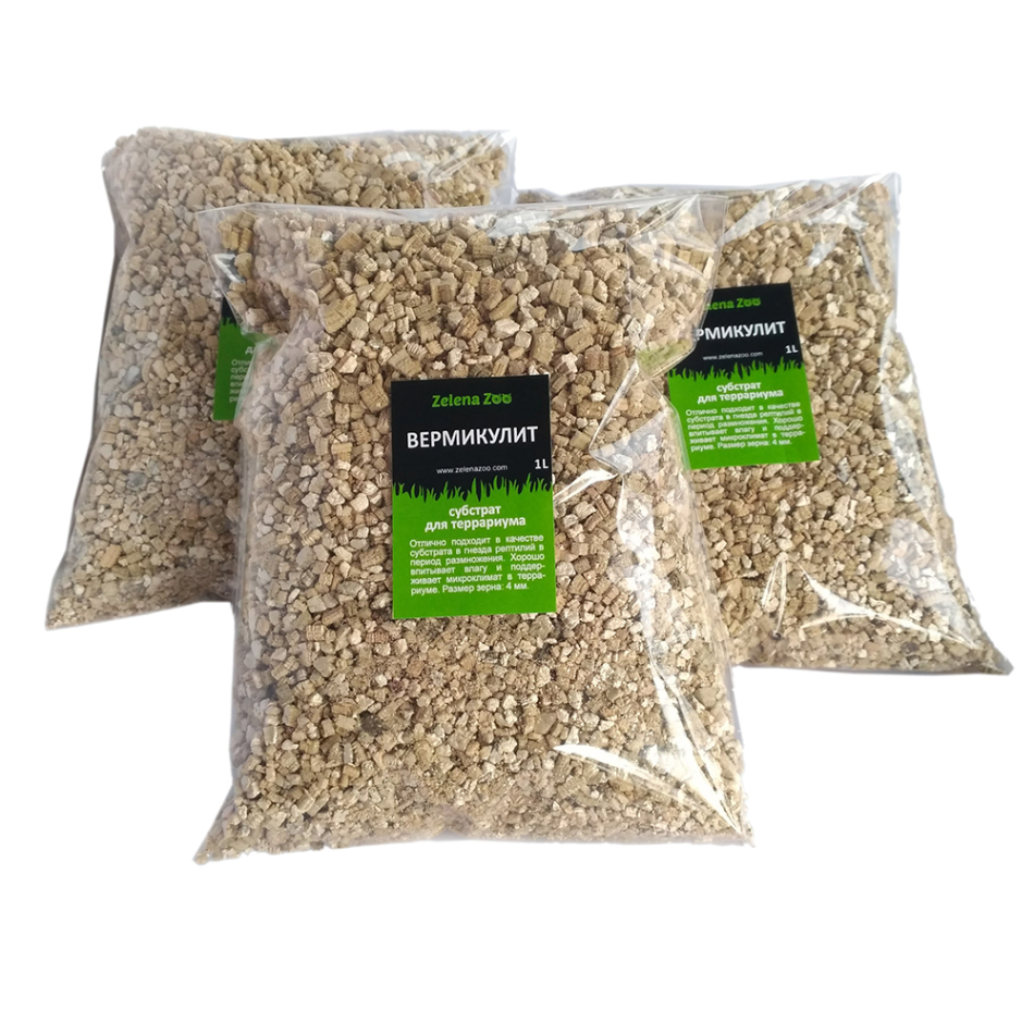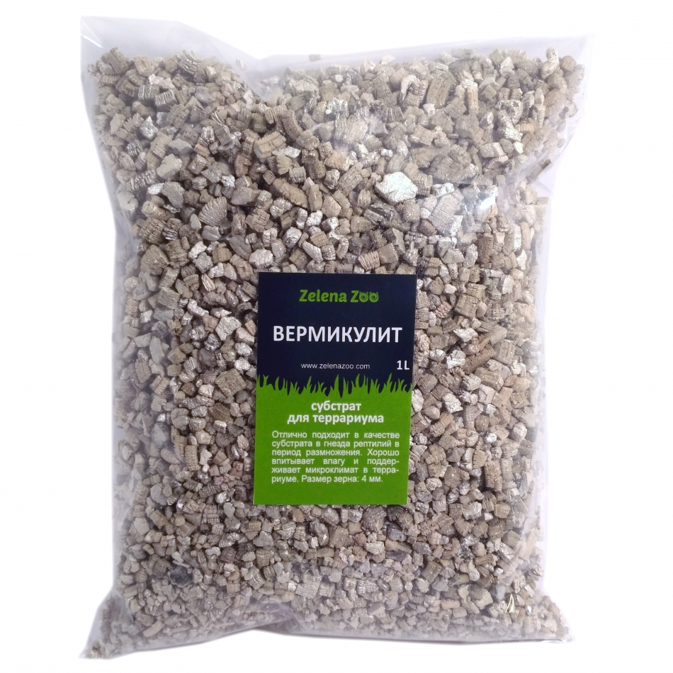 Вермикуліт субстрат для тераріума 1 л Zelena Zoo відмінно підходить як субстрат у гнізда рептилій у період розмноження. Не містить хімічних домішок, повністю безпечний для проживання тварин.